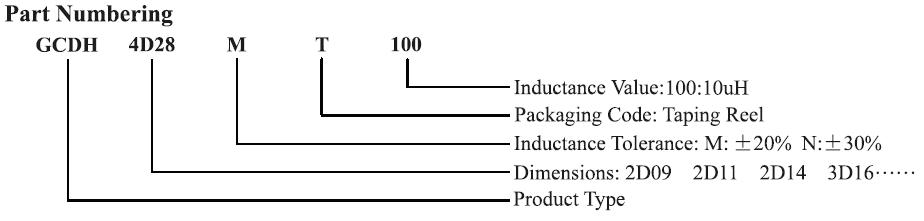 四、貼片功率電感GCDH封裝尺寸列表